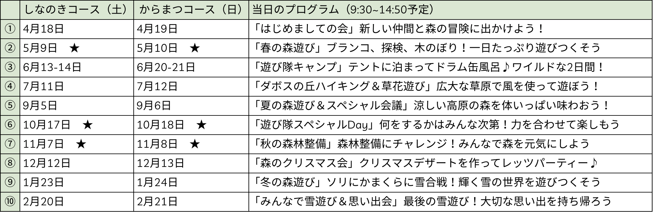しなのきコース、からまつコースのどちらかの参加となります。(お申込み後のコース変更はできません)