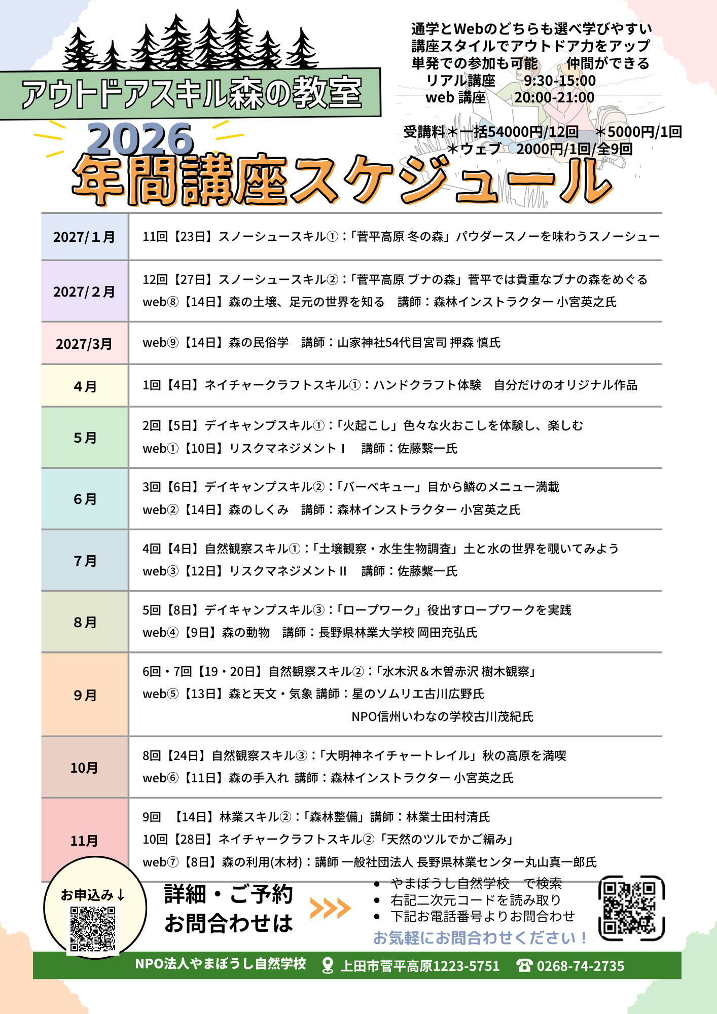 【募集】アウトドアスキル森の教室 2026