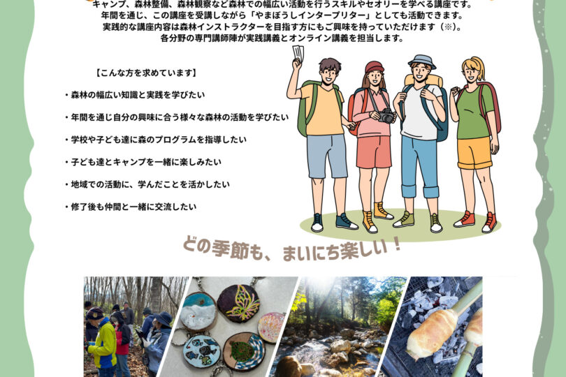 インタープリター養成講座大人が愉しむ自然学校指導者養成講座森林インストラクター養成講座 16 11月 2025 【終了しました】短期集中講座2025 自然体験活動の現場で活躍!即戦力スキルを身に付ける全7回講座(… 【2025年度 短期集中講座】2025年度 は、春コースに加え、秋コースを開講します。ダブ...