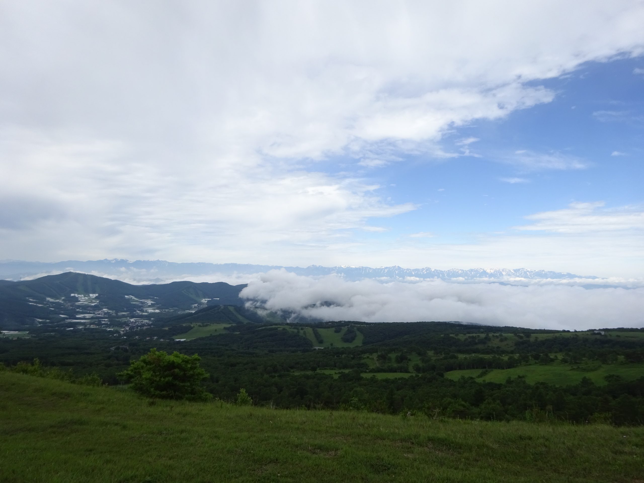 実習所を出発した時は小雨でしたが登山口に着くと北アルプスも見えていました。