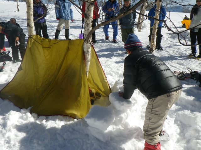 少人数のグループに分かれてビバーク場所の設営に挑戦!
